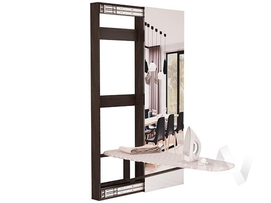 Универсальная конструкция — зеркальную створку можно расположить как слева; так и справа; Размер гладильной доски - 1124х350