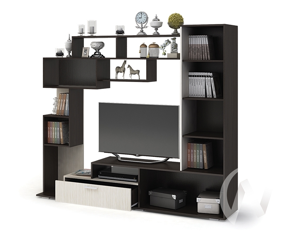Задняя стенка: ЛДВП 4 мм (Шимо тёмный/светлый) Опора: 20 мм. Прямоугольная; пластиковая (Серый) Кромка: 0;4х19 Ручки: Пластмасса Серый (128 мм) Петли: без доводчика Место под ТВ: 1310х740х416 Направляющие: роликовые 350 мм Универсальная сборка