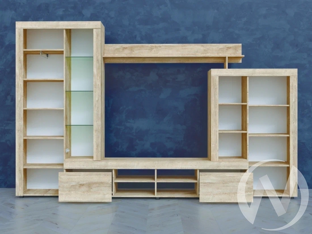 Гостиная выполнена в цвете Дуб баррик; который создает теплую и уютную атмосферу.Пенал комплектуется полками для хранения вещей и выдвижной штангой для одежды. Ниша под ТВ размером 1200х1150 мм позволяет разместить телевизор с большой диагональю. Пластиковые ручки удобны в использовании; а направляющие полного выдвижения обеспечивают легкий доступ к содержимому ящиков. Важная информация: Зеркальная сборка не предусмотрена.