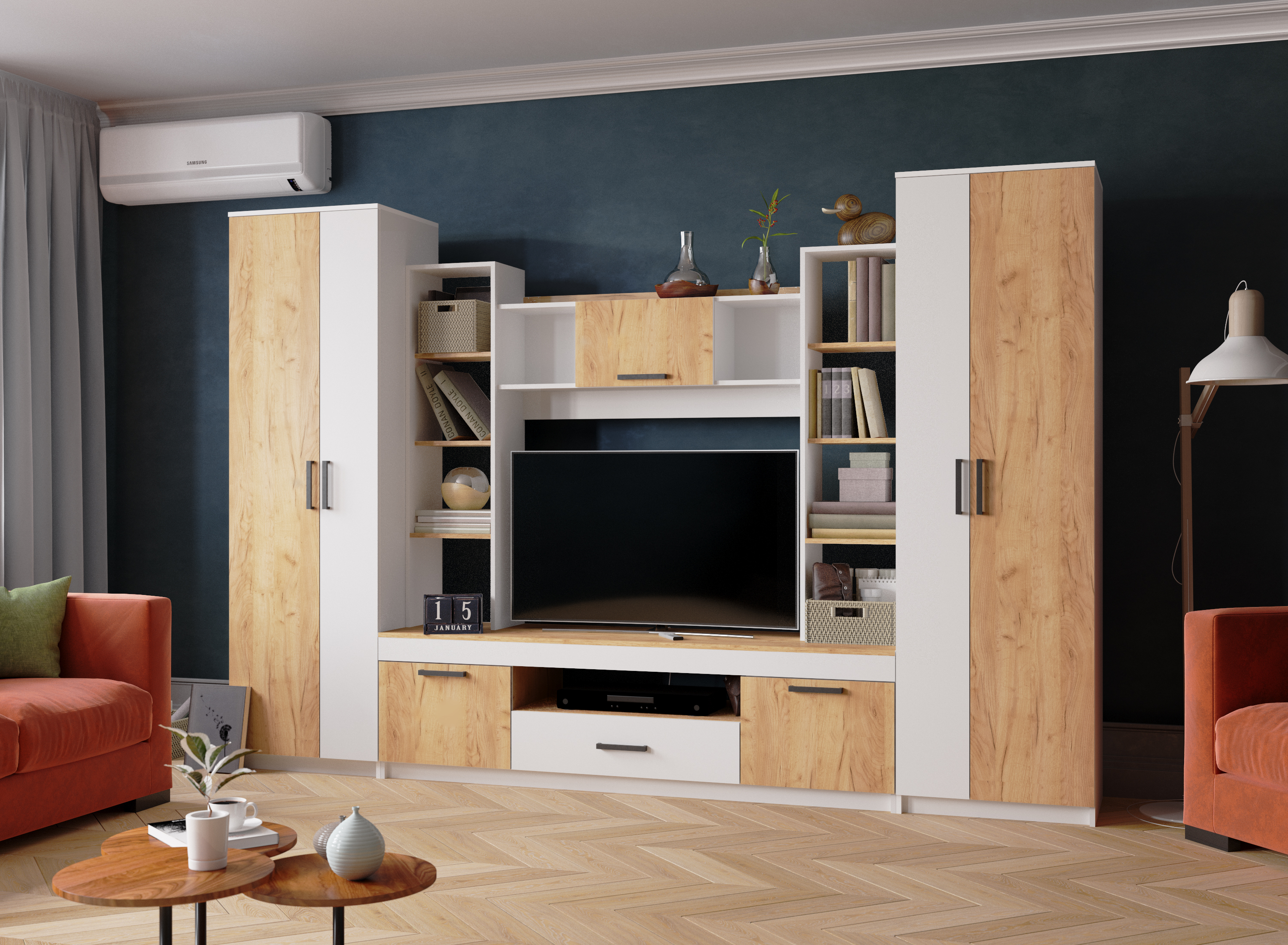 Гостиная Сидней-2 белый/дуб крафт золотой