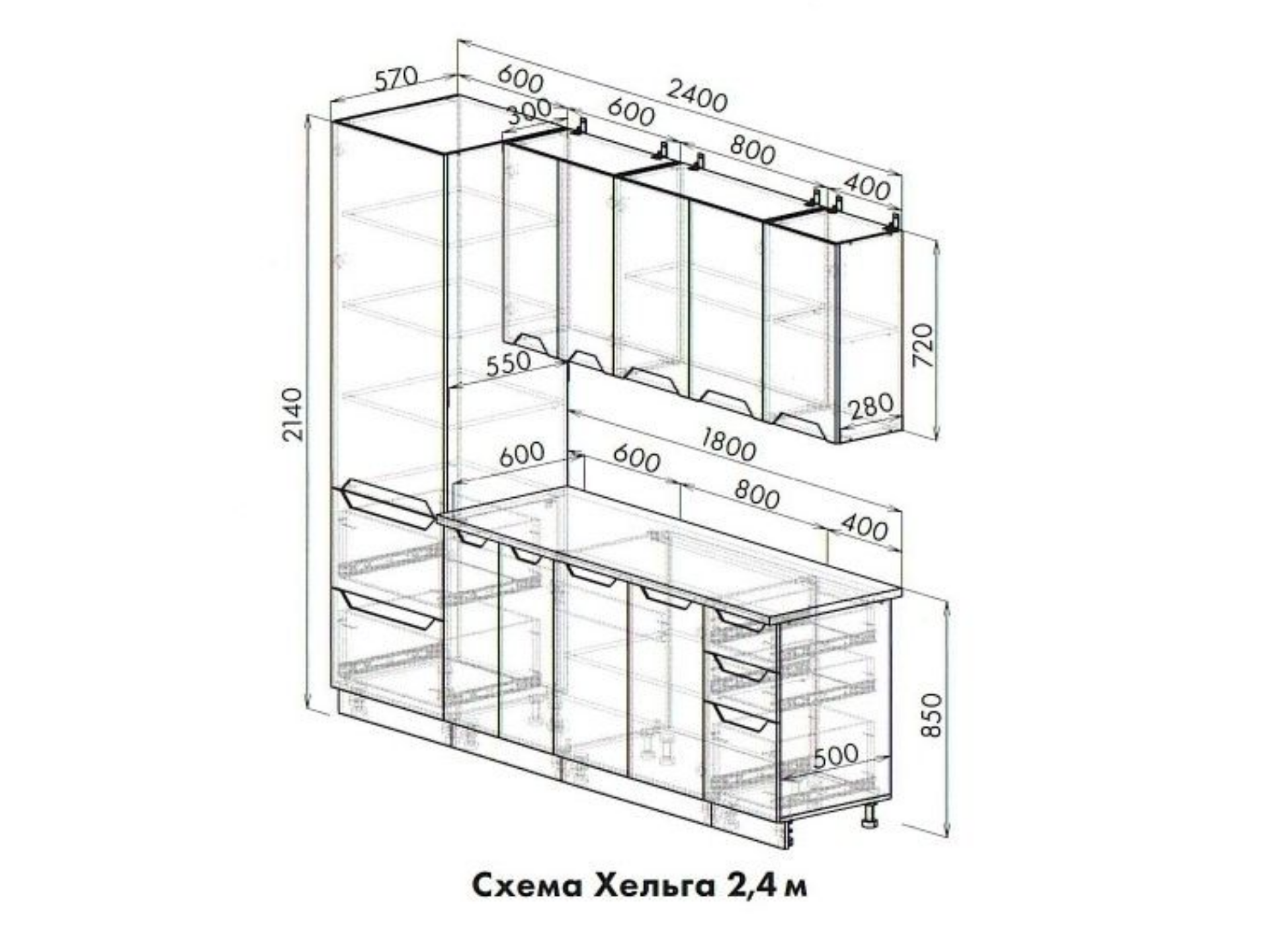 В состав современного кухонного гарнитура Хельга 2400 входят такие элементы: