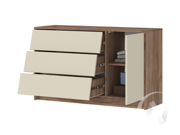 Верхние ящики открываются от зацепа. Нижний ящик - от нажатия
