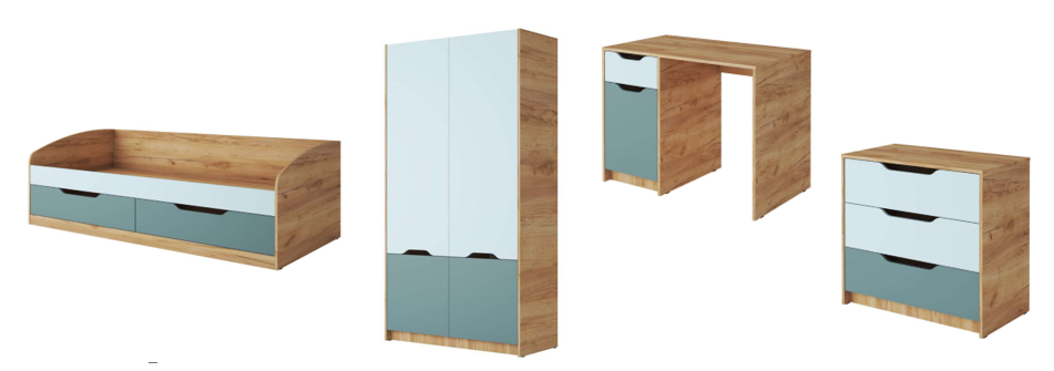 Комплект-1 RICH (КР-002+ШК-002+СП-001+КМ-001) Дуб Крафт золотой / Кенди U9114 (УД) / Сумеречный голубой