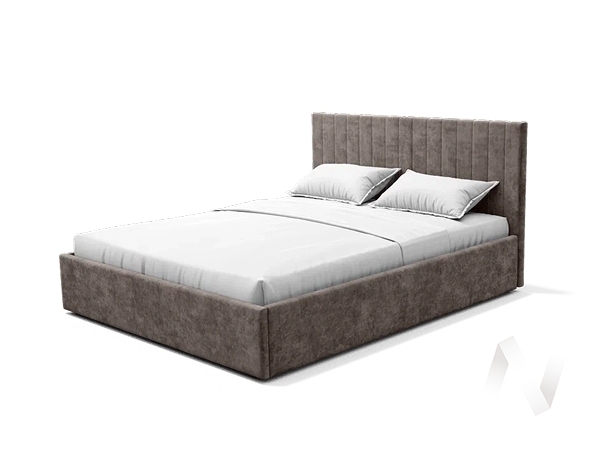 Материал мягких частей - велюр; задняя сторона - спанбонд серый. Кровать может комплектоваться ортопедическим основанием с подъемным механизмом; ЛДСП настилом; ДСП проложками или реечным настилом; также может комплектоваться опорами "звезда" в золотом или черном цвете. Любое из этих оснований и опоры приобретаются отдельно. Декор изголовка - стежка