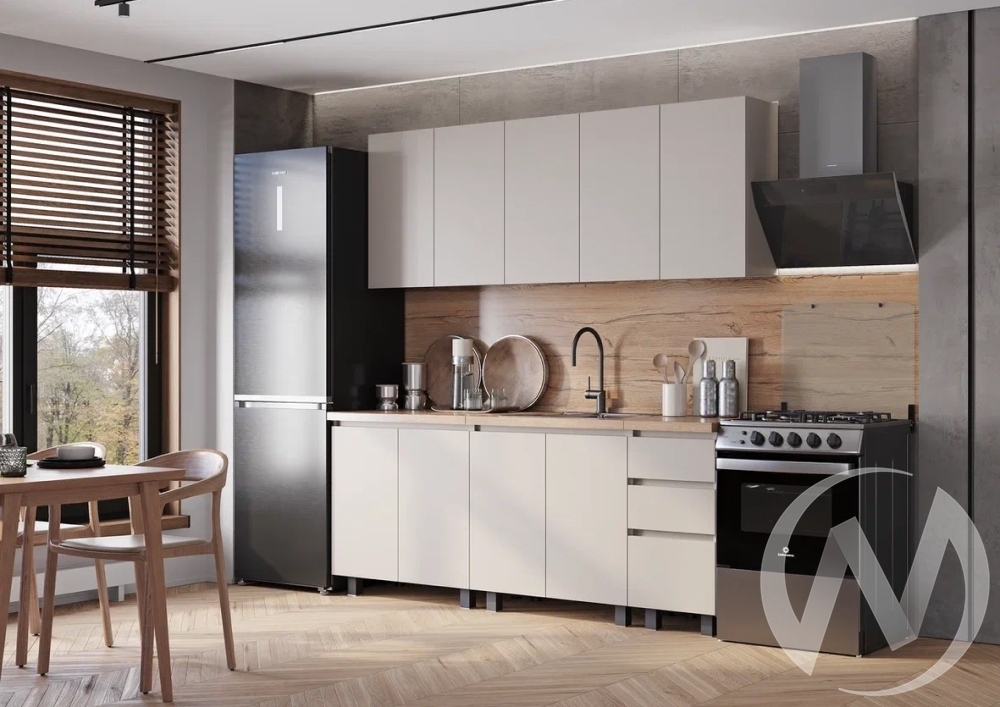 Глубина модулей без столешницы: 500 мм. Максимальная нагрузка на полку - 10 кг; на ящик - 5 кг. Крепление к стене - навес плоский. В комплекте раздельная столешница 800+800+400 мм. Размер верхних модулей (ШВГ): 2000х738х308. Размер нижних модулей по столешнице (ШВГ): 2000х858х600