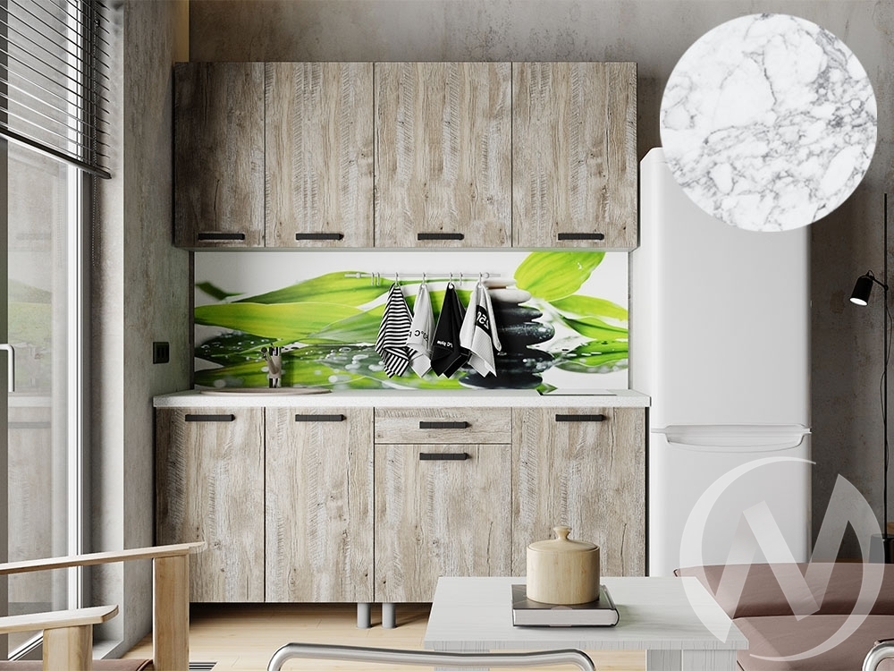 Стеновая панель; мойка; смеситель не входят в стоимость комплекта. Состав компоновки: ШВ800; ШВ1000; ШНМ800; ШН1Я1000. ¶¶Глубина нижних модулей со столешницей и фасадами: 600мм. Глубина нижних модулей без столешницы и фасадов: 430 мм. ¶Высота нижних модулей без столешницы: 726 мм. ¶Высота верхних модулей: 720 мм. Глубина верхних модулей: 290 мм. Столешница цельная