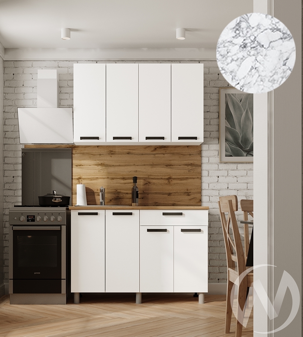 Стеновая панель; мойка; смеситель не входят в стоимость комплекта. ¶Состав компоновки: ШВ1200; ШНМ1Я1200¶¶ Глубина нижних модулей со столешницей и фасадами: 600 мм¶ Глубина нижних модулей без столешницы и фасадов: 430 мм¶ Высота нижних модулей без столешницы: 726 мм ¶ Высота верхних модулей: 720 мм¶ Глубина верхних модулей: 290 мм¶ Столешница цельная