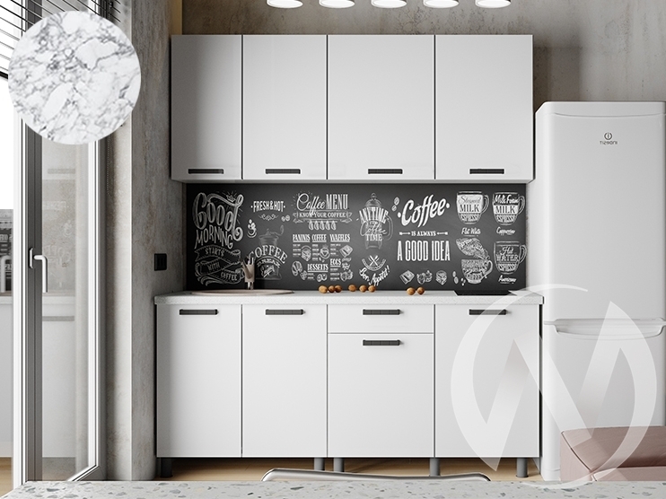 Кухня Кьяра 1.8м (корпус белый/карбон фарфор) 26мм мрамор итальянский