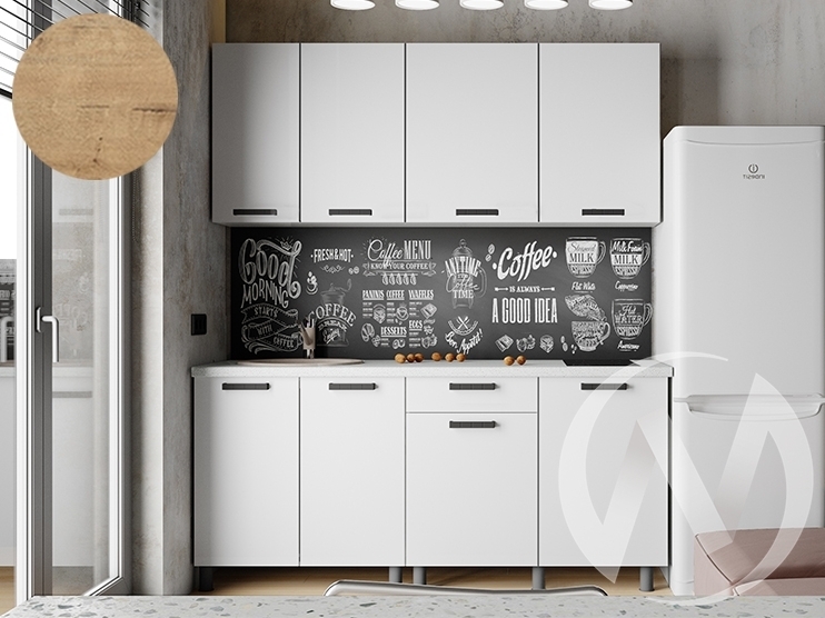 Стеновая панель; мойка; смеситель не входят в стоимость комплекта. Состав компоновки: ШВ800; ШВ1000; ШНМ800; ШН1Я1000. ¶¶Глубина нижних модулей со столешницей и фасадами: 600мм. Глубина нижних модулей без столешницы и фасадов: 430 мм. ¶Высота нижних модулей без столешницы: 726 мм. ¶Высота верхних модулей: 720 мм. Глубина верхних модулей: 290 мм. Столешница цельная