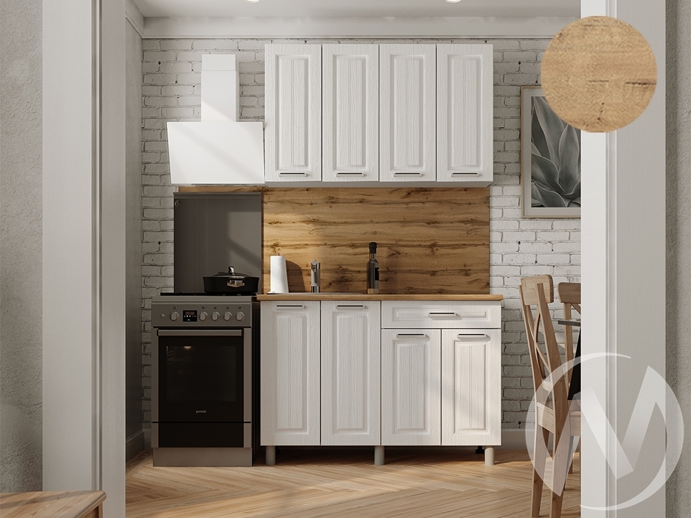 Стеновая панель; мойка; смеситель не входят в стоимость комплекта. ¶Состав компоновки: ШВ1200; ШНМ1Я1200¶¶ Глубина нижних модулей со столешницей и фасадами: 600 мм¶ Глубина нижних модулей без столешницы и фасадов: 430 мм¶ Высота нижних модулей без столешницы: 726 мм ¶ Высота верхних модулей: 720 мм¶ Глубина верхних модулей: 290 мм¶ Столешница цельная