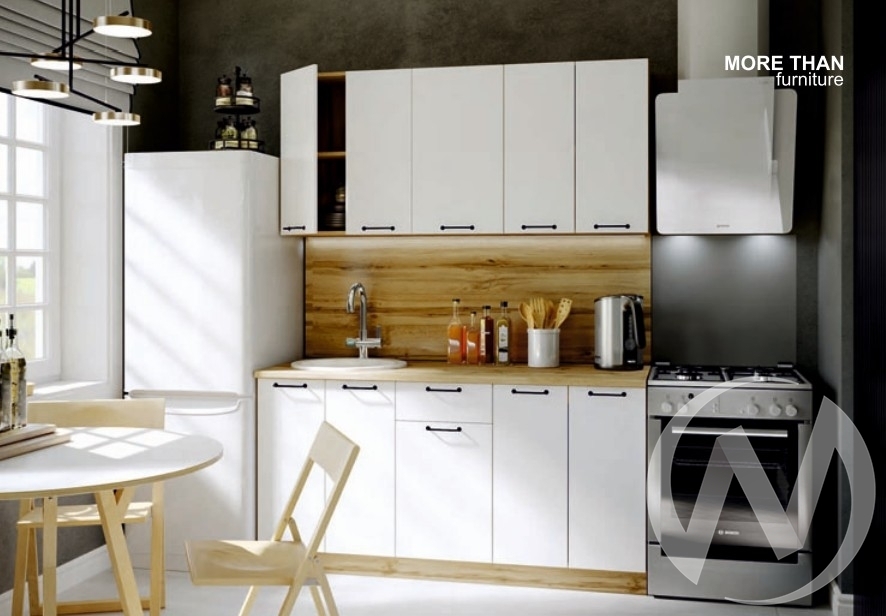 Стеновая панель; мойка; смеситель не входят в стоимость комплекта. Глубина нижних модулей со столешницей: 600мм; Глубина нижних модулей без столешницы: 458мм; Высота нижних модулей: 816мм; Высота верхних модулей: 716мм; Глубина верхних модулей: 318мм. Столешница цельная; цвет вотан.