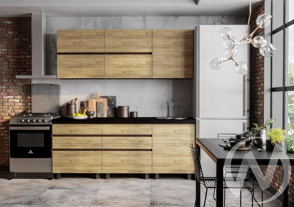 Размер верхних модулей (ШВГ): 2000х720х310. Размер нижних модулей (ШВГ) по столешнице: 2000х858х600