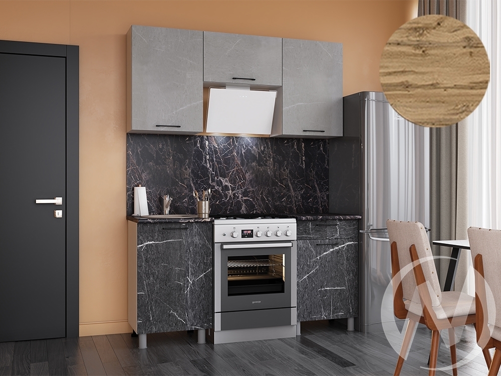 Столешница; стеновая панель; мойка; смеситель не входят в стоимость комплекта. ¶Состав компоновки: ШВ1600 с окапом; ШНМ500; ШН1Я500. Глубина нижних модулей без столешницы и фасадов: 430 мм. ¶Высота нижних модулей без столешницы: 726 мм. ¶Высота верхних модулей: 720 мм. Глубина верхних модулей: 290 мм.