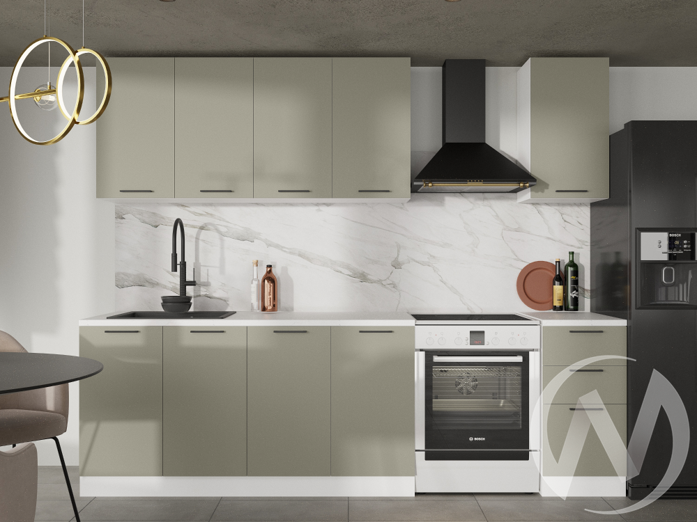 Размер верхних модулей: 2000х716х318. Размер нижних модулей по столешнице: 2000х842х600