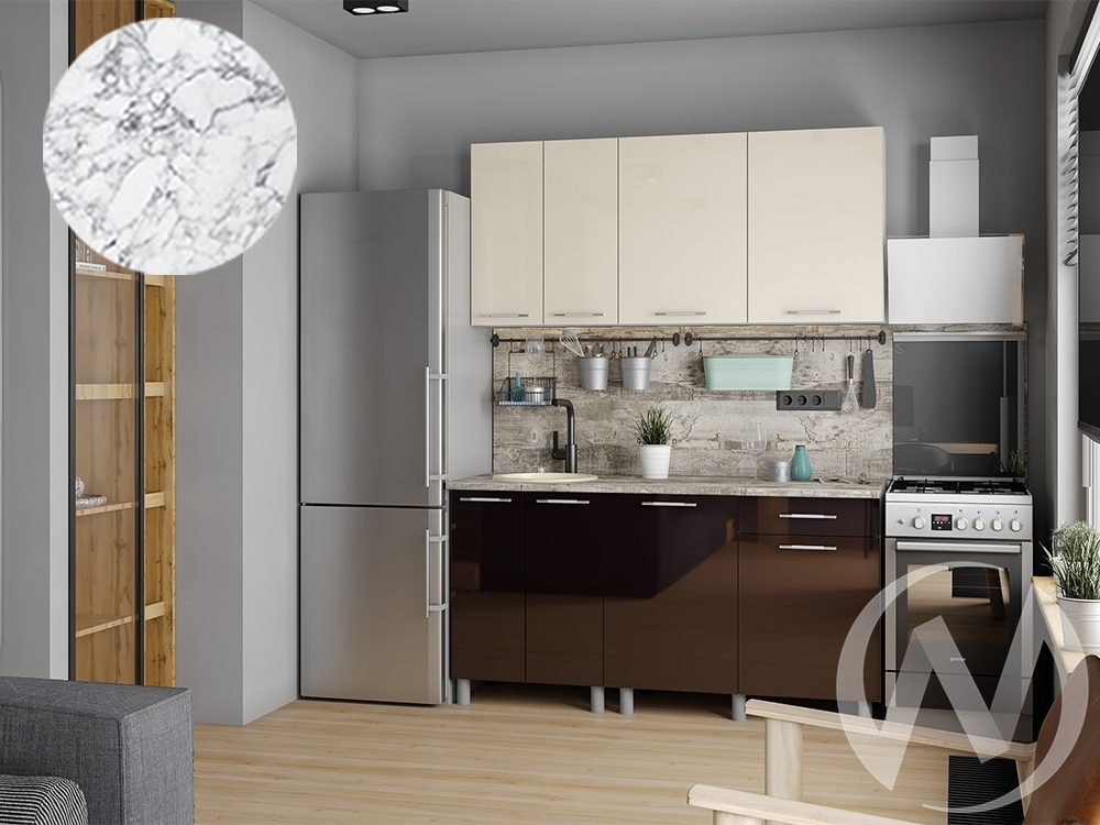 Стеновая панель; мойка; смеситель не входят в стоимость комплекта. Состав компоновки: ШВ600; ШВ1000; ШНМ600; ШН1Я1000. ¶Глубина нижних модулей со столешницей и фасадами: 600 мм. Глубина нижних модулей без столешницы и фасадов: 430 мм. ¶Высота нижних модулей без столешницы: 726 мм. ¶Высота верхних модулей: 720 мм. Глубина верхних модулей: 290 мм. Столешница цельная
