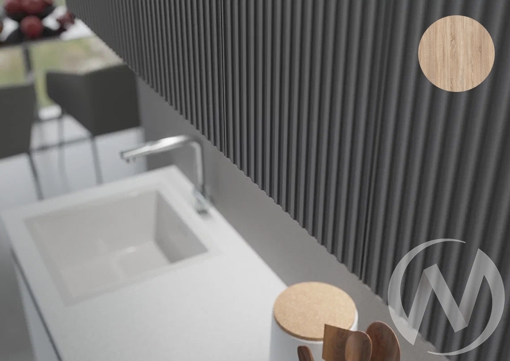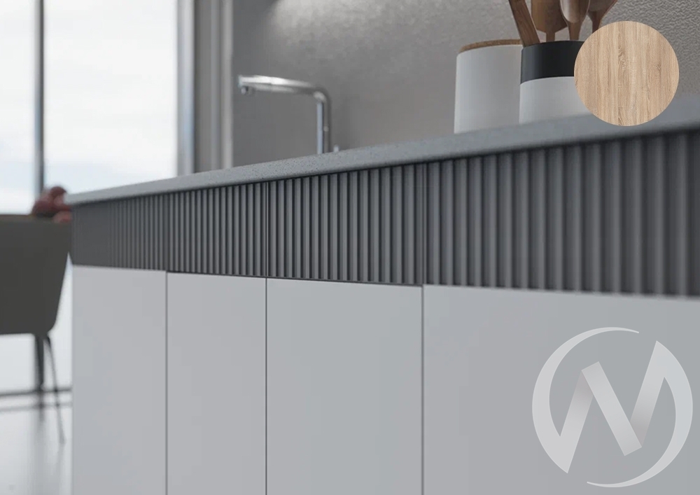 Фасады с фрезеровкой. Фасады покрыты пленкой ПВХ. Верхние модули (ШхВхГ):¶ШВ1Д600 - 60 х 71.8 х 28 см - 2 шт.¶ШВ800 - 80 х 71.8 х 28 см - 1 шт.¶Нижние модули (ШхВхГ):¶ШНМ1Д600 - 60 х 82 х 49 см - 1 шт.¶ШН2Я800 - 80 х 82 х 49 см - 1 шт.¶ШН1Д600 - 60 х 82 х 49 см - 1 шт.¶Столешница 200 см - 1 шт.¶Высота нижних модулей указана без учета столешницы.¶Глубина модулей указана без учета фасада.¶Цоколь в комплект не входит.¶Регулирование опор: от 10 до 12 см.¶Толкатели в комплекте.