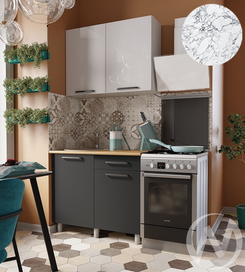 Кухня Ребекка 1.0м (корпус белый/белый; графит) 26мм мрамор итальянский