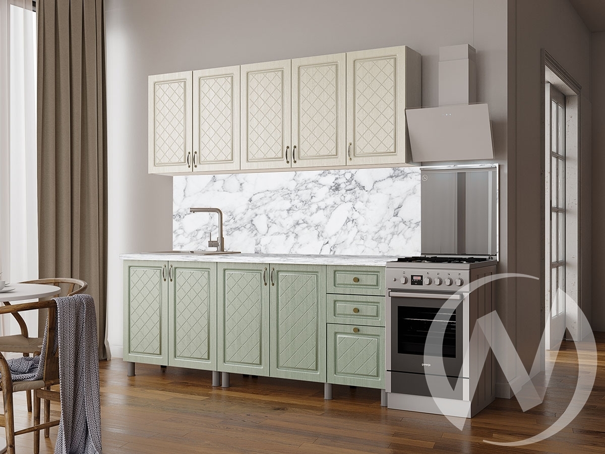 Стеновая панель; мойка; смеситель не входят в стоимость комплекта. Состав компоновки: ШВ800; ШВ1200; ШНМ800; ШН3Я1200. Глубина нижних модулей со столешницей и фасадами: 600 мм. Глубина нижних модулей без столешницы и фасадов: 430 мм. Высота нижних модулей без столешницы: 726 мм. Высота верхних модулей: 720 мм. Глубина верхних модулей: 290 мм. Столешница цельная