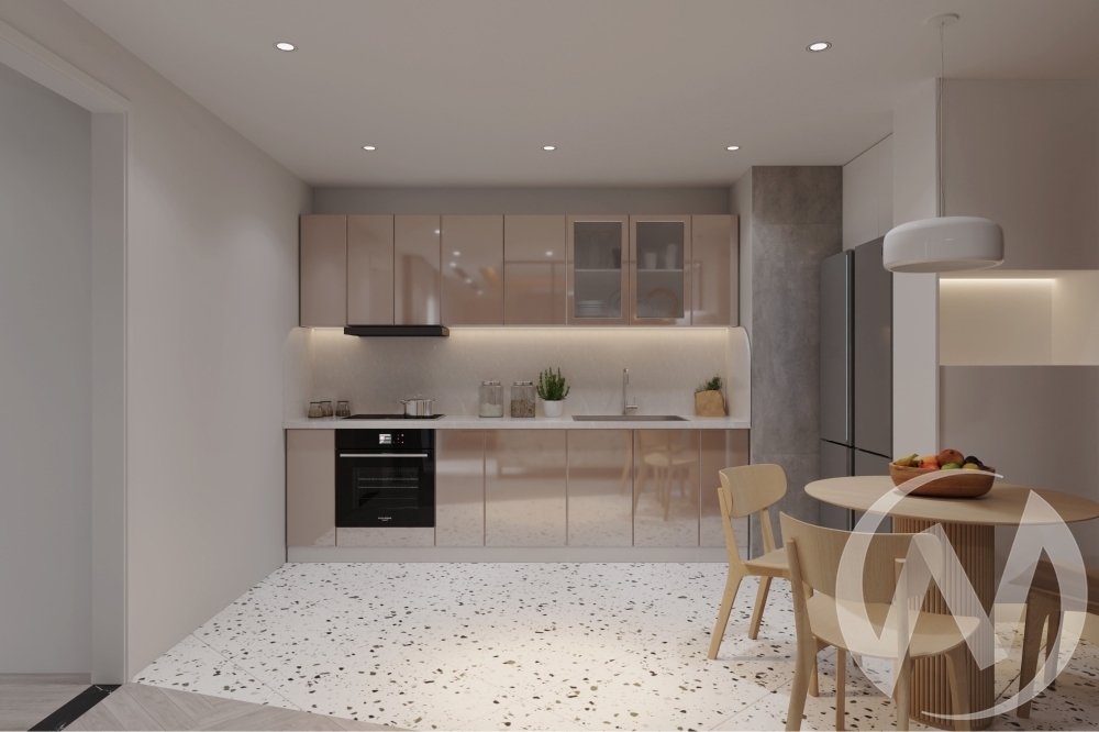 Верхние шкафы: глубина - 320 мм. Нижние шкафы: глубина - 480 мм. и 600 мм (со столешницей)