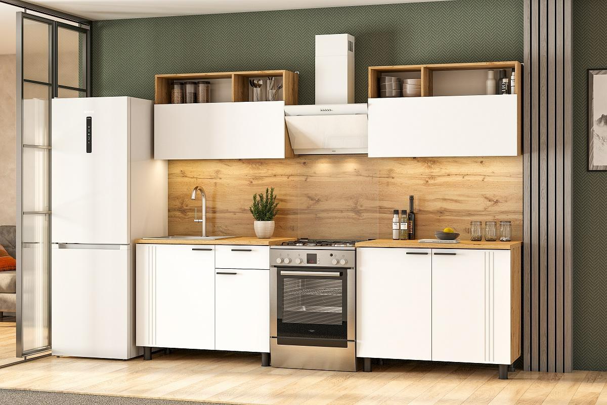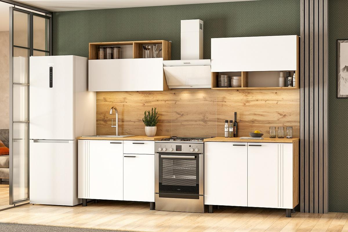 Кухонный гарнитур "Монако" (2м) (Серия 2) Дуб Золотой/Белый матовый/Дуб Вотан