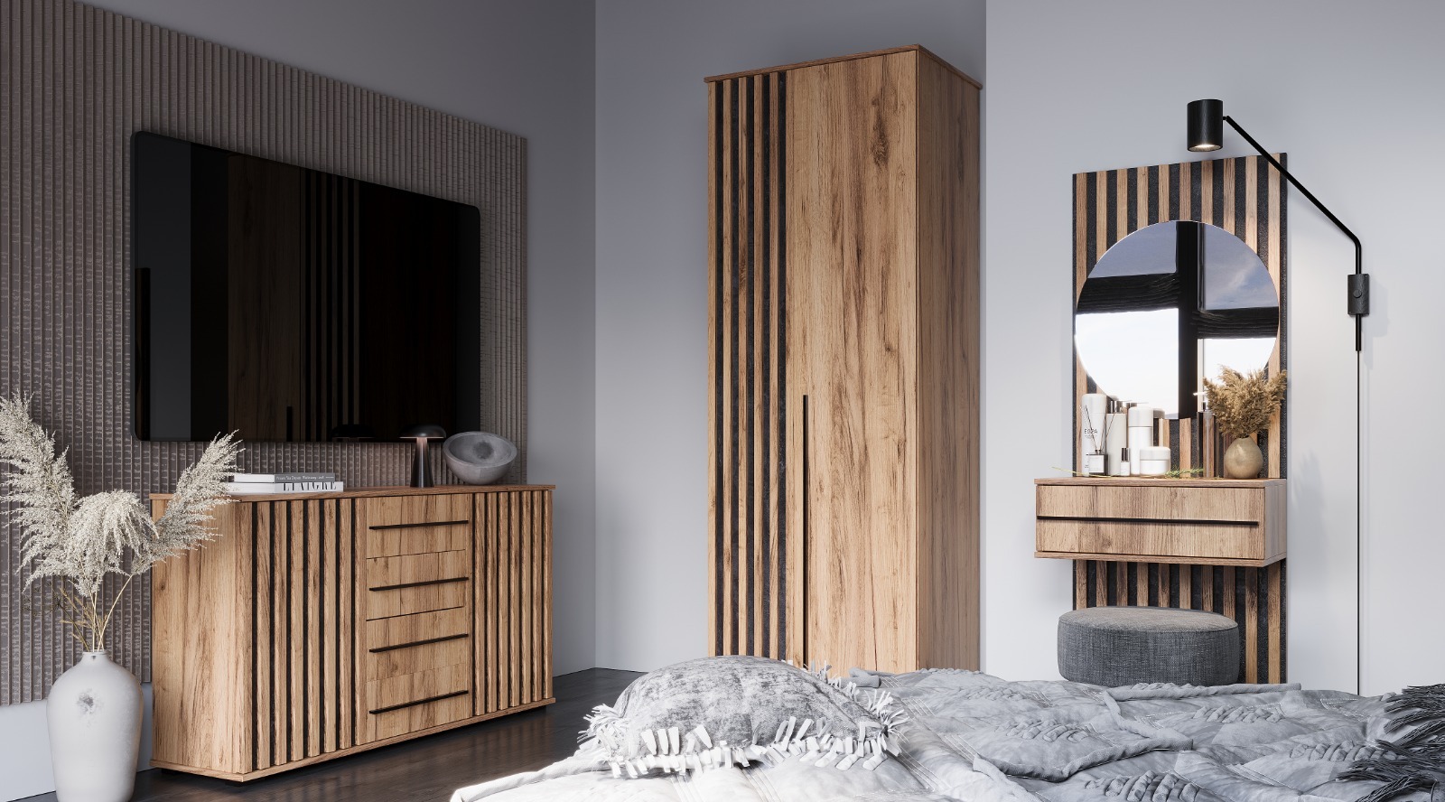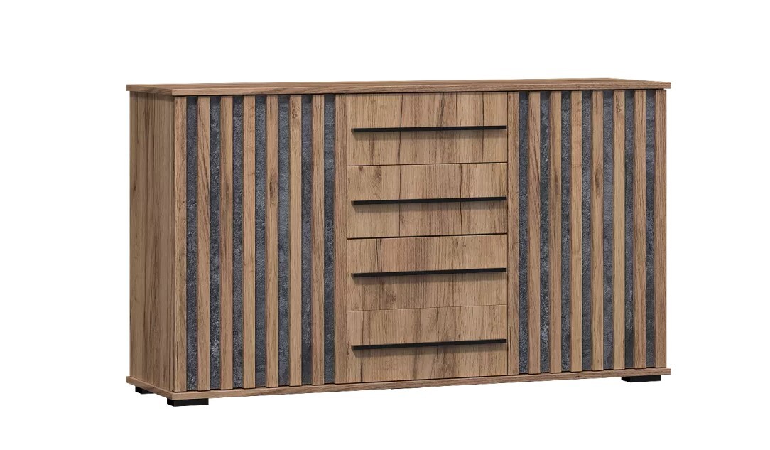 Марракеш Комод 2 створки 4 ящика Дуб вотан / Цемент темный
