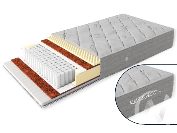 Состав: пена с массажным эффектом 30мм; латексированное кокосовое волокно 10мм; термовойлок; пружинная система "Multipocket" 140 мм; термовойлок; латексированное кокосовое волокно 10мм; ортофайбер 30мм. Усиление по периметру матраса. Чехол: из трикотажа стеганого на объемном волокне. Боковины с системой 3D Aerosystem и вышивкой "Кузбасс". Особенности: ППУ ST22/36; усиление по перимеру матраса ППУ 100 мм. Аэролента или аэраторы - 3D сетка. Цвет чехла по периметру - серый. Кол-во пружин на кв.м - 500; толщина проволоки - 1;4; количество витков - 6; диаметр пружин - 43; расстояние между пружинами - нет