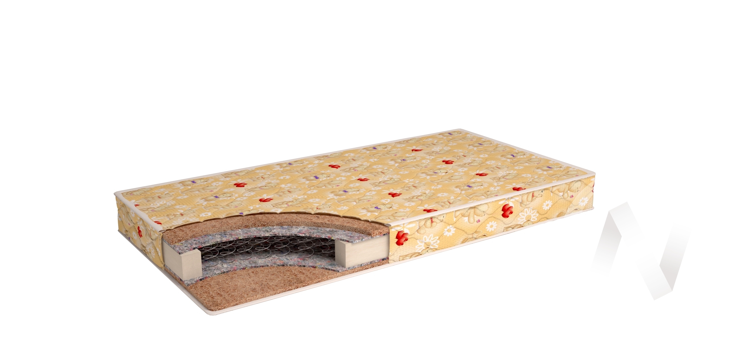 Пружинный блок "Bonnell"; кокосовая койра 20 мм; спанбонд. Количество пружин на 1 м2: 110. Диаметр проволоки; мм: 2;2 Высота матраса: 120