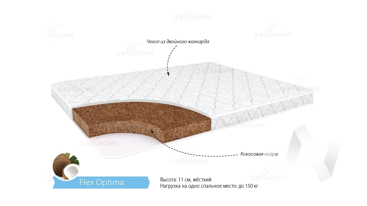Двойной жаккард; простеганный на гипоаллергенном волокне и 10 мм пенополиуретана; спанбонд