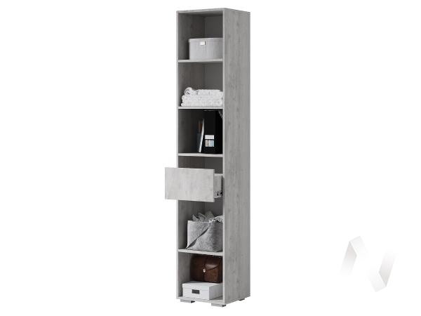 Пенал Мрия ПН-11 – это удобная система хранения внутри и компактный элемент гостиной снаружи. Особую индивидуальность ей придаёт выдвижной ящик на шариковых направляющих; разделяющий пять вместительных полок по разным функциональным назначениям. На верхних полках можно хранить одежду или постельное бельё; а на нижних – сезонную обувь в коробках или игрушки вашего ребёнка.