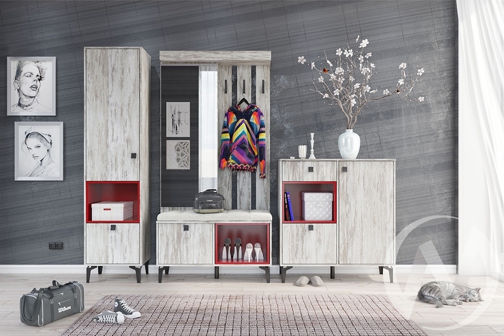 Корпус: ЛДСП Фасад: ЛДСП Задняя стенка: ЛДВП 4 мм; белая Опоры: металл; черные; 150 мм; регулируемые Кромка: ПВХ; 0;4мм Ручки: Пластик; черные; soft-touch; кнопки 32 мм Направляющие: роликовые; металл Штанга: выдвижная; металл Зеркало: 4мм; еврокромка (приклеено) Петли: без доводчика В комплект входит навес В центральной секции предусмотрено мягкое сиденье; обшитое тканью Честер с декоративной стяжкой Серия может быть скомплектована вставными кубами цвета Бордо; Красный; Оранж; Мохито. Материал кубов: высокоглянцевые панели «High Gloss» Цветные вставки приобретаются отдельно