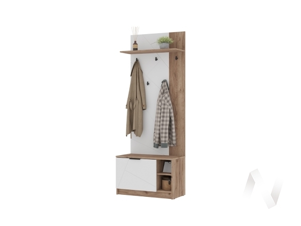 На фасаде присутствует дуб крафт табачный; материал - ЛДСП 16 мм; Белый супермат - МДФ 16 мм. Газлифт секретерный в комплекте