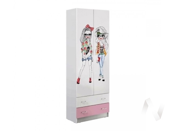Шкаф Детская Вега ЛДСП FASHION (белый/белый; розовый)