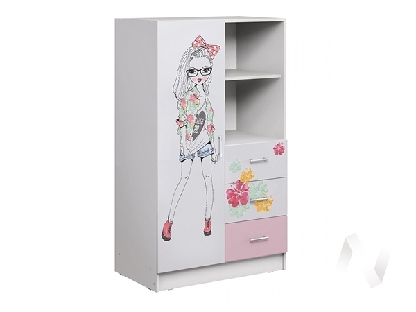 Шкаф комбинированный Детская Вега ЛДСП FASHION (белый/белый; розовый)