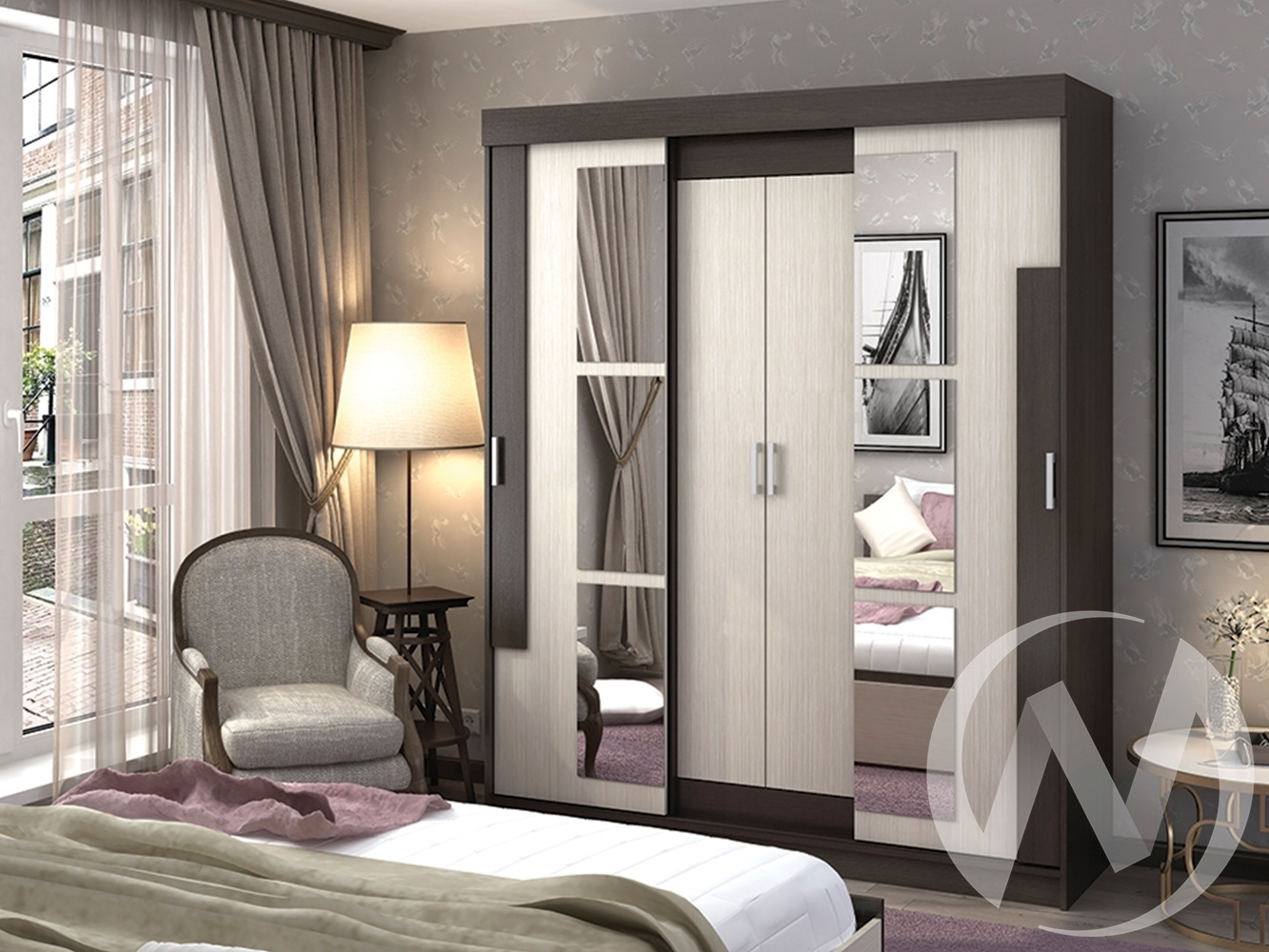 ЛДСП Венге ЛДВП 4 мм. Венге Кромка 0;4х19 Венге ЛДСП Белфорд Кромка 0;4х19 Белфорд Ручка С-17 Пластмасса цвет серый 128 мм Направляющая СТ-147 ( верхняя ) Направляющая СТ-147 ( нижняя ) Штанга металл без доводчика Ролик ходовой СТ 147/148 ; кораблик Зеркало 4 мм С обработкой наклеено Тип сборки универсальный; расстояние между полками 400мм Наплонение полки.