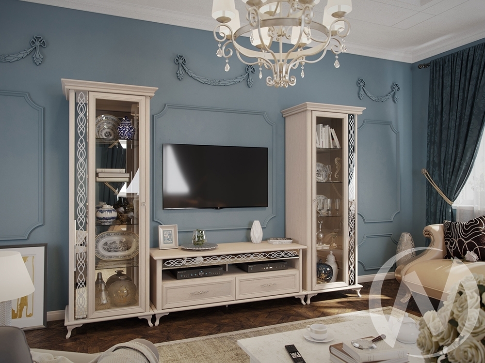 Корпус: ЛДСП 16мм Бодега светлый; профиль МДФ Фасад: Профиль МДФ Бодега светлый Кромка АВС - 0.5/19мм бодега белый. Ручки: металлические; серебро Шариковые направляющие L-400х35 мм Наполнение: ящики Зеркало с рисунком и фасцетом по периметру Петли без доводчика Универсальная сборка