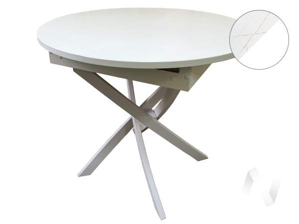Без механизма. Столешница ЛДСП 22 мм + пластик. Кромка ПВХ 2 мм. Подстолье разборное из профильной трубы 50х25 мм; с порошковой покраской. Царговый пояс ЛДСП 16 мм белый