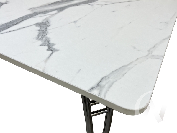Без механизма. Столешница - ЛДСП 22 мм + пластик. Кромка - ПВХ 2 мм. Подстолье - цельносварное из хромированной трубы d-25 мм